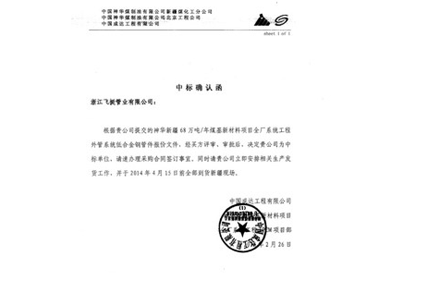 2014年2月,飞挺公司参与由中国成达工程有限公司承包的神华新疆68万吨/年煤基新材料项目全厂系统工程...